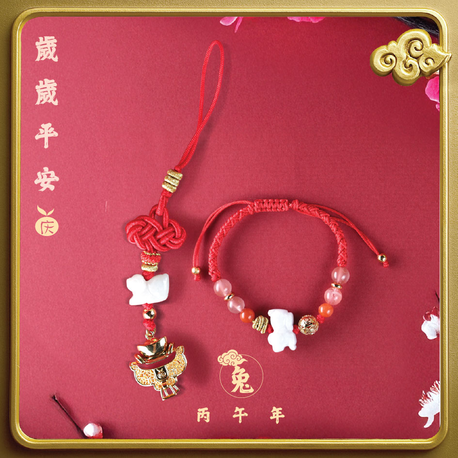 四款專為犯太歲生肖(馬、鼠、兔、牛)設計的「鴻運當頭隨身手繩」,每款均配有一至兩枚優質 A 玉雕制的生肖玉石,助力化解流年衝擊,增添福澤。