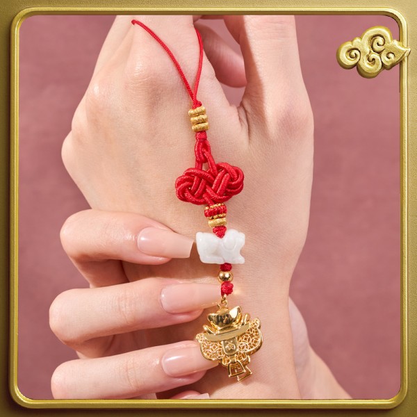 「馬載金寶掛飾」適合繫於手機、包包或任何貼身日常用品,造型別緻、手工精細,既保留了傳統結藝與玉石文化的精髓,又融入現代審美的簡約設計,充分體現本堂「守正創新、精益求精」的理念。祈願佩戴者於丙午馬年「金鞍載福護身前,馬上得財歲歲安」。