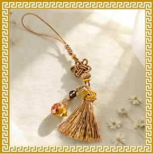 「金祿福藏-茶晶掛飾」由資深匠純手工編結而成,每一道繩結皆融入巧思;主繩、如意結與玉米結採用溫潤卡其色,呈現沉穩雅緻的氣質。主石甄選通透茶晶,象徵淨化負能、守護身心;鍍金立體葫蘆,取其「福祿」吉...