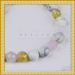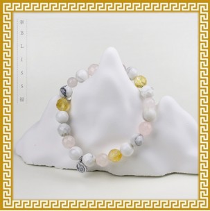 「金雪薔薇 - 納金安神手串」,甄選凝雪般的白松石、金箔般耀眼的黃水晶、薔薇般粉嫩的粉晶,蘊含「納金聚福」與「安神定氣」能量,為兼顧愛情、財運與心神安穩的你送上全方位祝福。 這款手串既是...