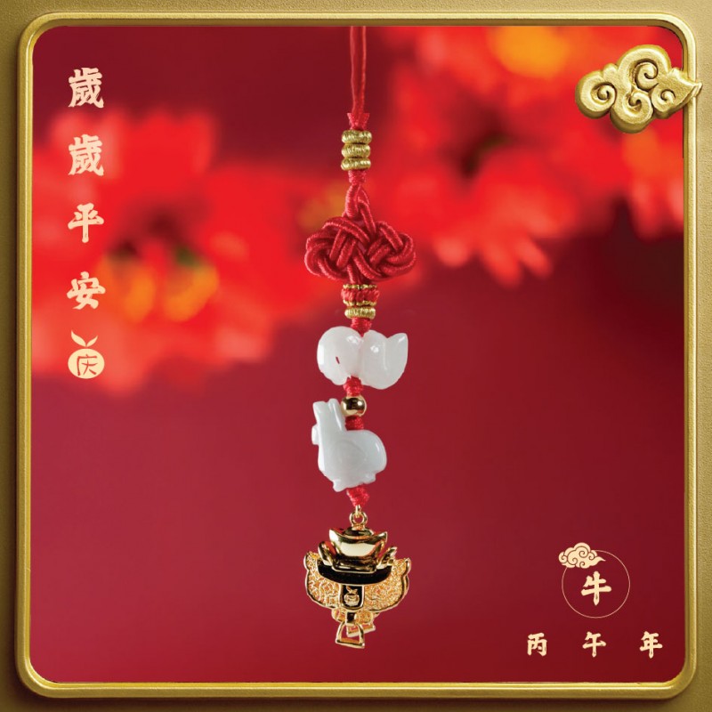 四款專為丙午馬年犯太歲生肖(馬、鼠、兔、牛)量身打造的「馬載金寶掛飾」,除了採用天然生肖玉石以助趨吉避凶,更以馬年開運為概念,獨家配搭鍍真金的「招財金鞍」旺運配件,祝願佩戴者在新一年鵬程萬裡、諸事順遂、馬到功成。