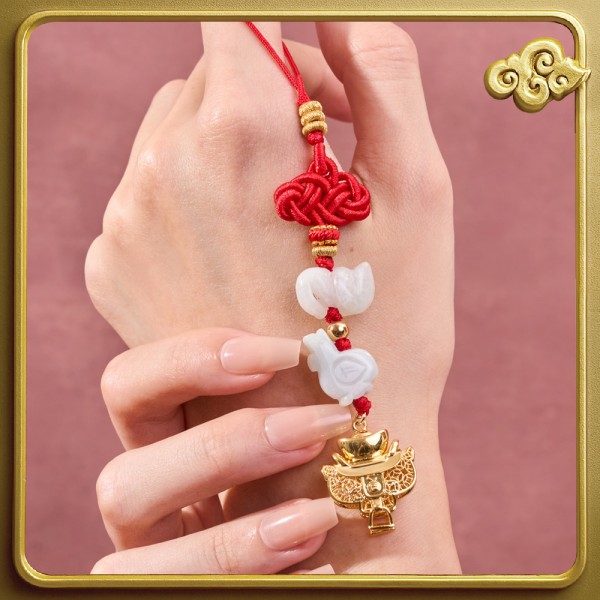 「馬載金寶掛飾」適合繫於手機、包包或任何貼身日常用品,造型別緻、手工精細,既保留了傳統結藝與玉石文化的精髓,又融入現代審美的簡約設計,充分體現本堂「守正創新、精益求精」的理念。祈願佩戴者於丙午馬年「金鞍載福護身前,馬上得財歲歲安」。