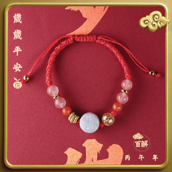 手繩採用可調節式結構設計,適合男女老幼貼身佩戴,搭配瑰麗包裝,實為送禮自用的上佳之選,願佩戴者在馬年常伴幸福、平安如意。