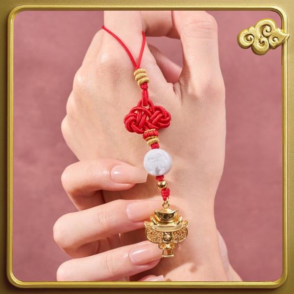 「馬載金寶掛飾」適合繫於手機、包包或任何貼身日常用品,造型別緻、手工精細,既保留了傳統結藝與玉石文化的精髓,又融入現代審美的簡約設計,充分體現本堂「守正創新、精益求精」的理念。祈願佩戴者於丙午馬年「金鞍載福護身前,馬上得財歲歲安」。