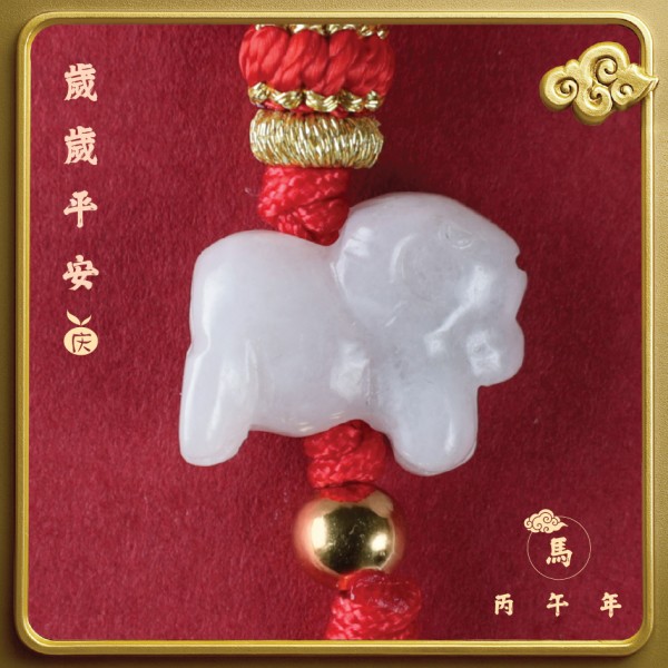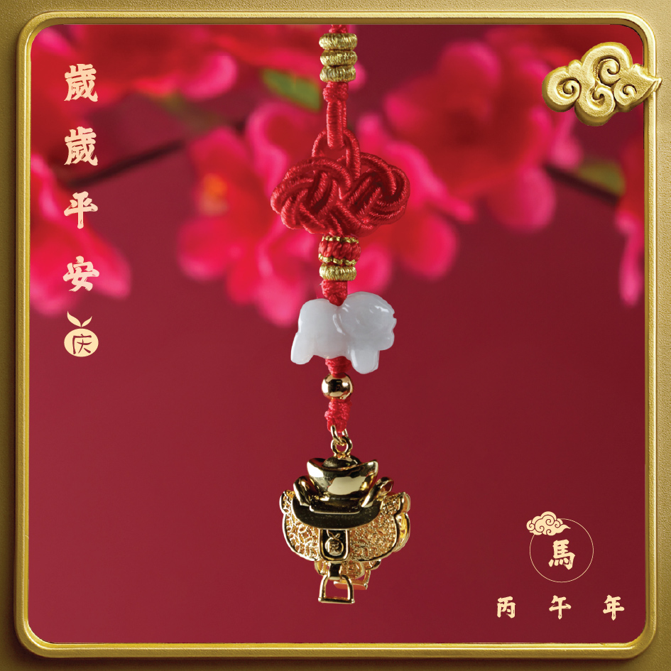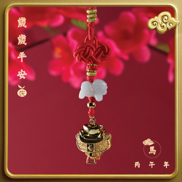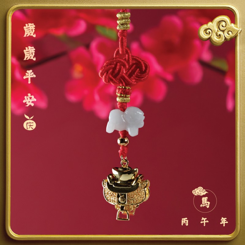 四款專為丙午馬年犯太歲生肖(馬、鼠、兔、牛)量身打造的「馬載金寶掛飾」,除了採用天然生肖玉石以助趨吉避凶,更以馬年開運為概念,獨家配搭鍍真金的「招財金鞍」旺運配件,祝願佩戴者在新一年鵬程萬裡、諸事順遂、馬到功成。