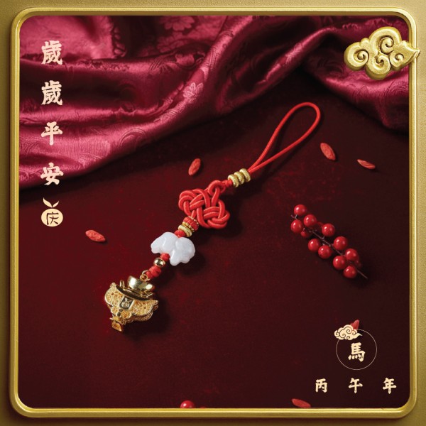 「馬載金寶掛飾」適合繫於手機、包包或任何貼身日常用品,造型別緻、手工精細,既保留了傳統結藝與玉石文化的精髓,又融入現代審美的簡約設計,充分體現本堂「守正創新、精益求精」的理念。祈願佩戴者於丙午馬年「金鞍載福護身前,馬上得財歲歲安」。