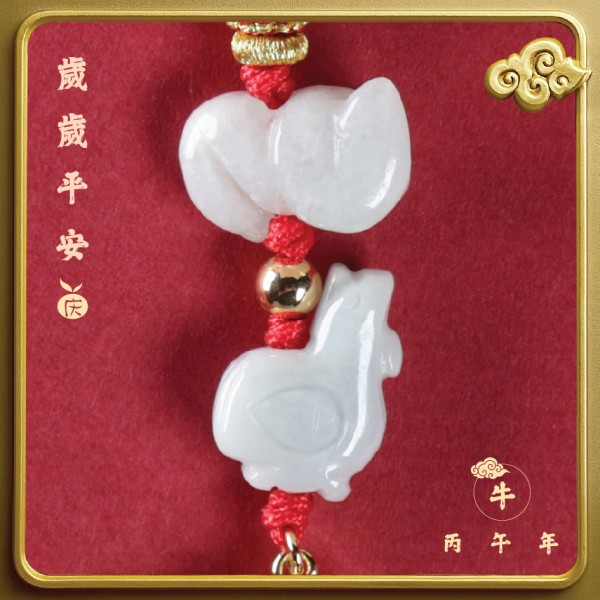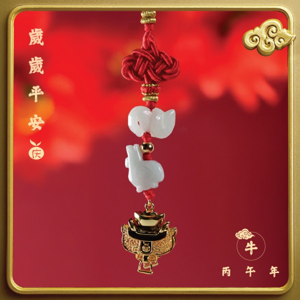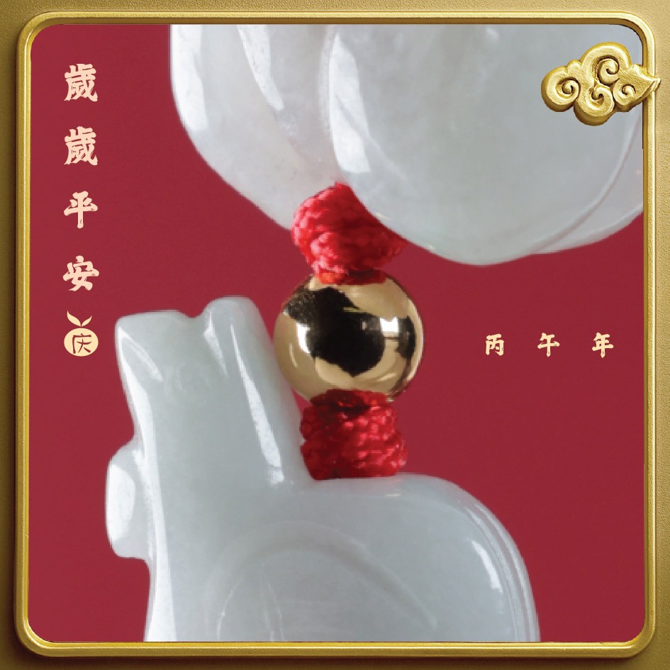 四款專為丙午馬年犯太歲生肖(馬、鼠、兔、牛)量身打造的「馬載金寶掛飾」,除了採用天然生肖玉石以助趨吉避凶,更以馬年開運為概念,獨家配搭鍍真金的「招財金鞍」旺運配件,祝願佩戴者在新一年鵬程萬裡、諸事順遂、馬到功成。