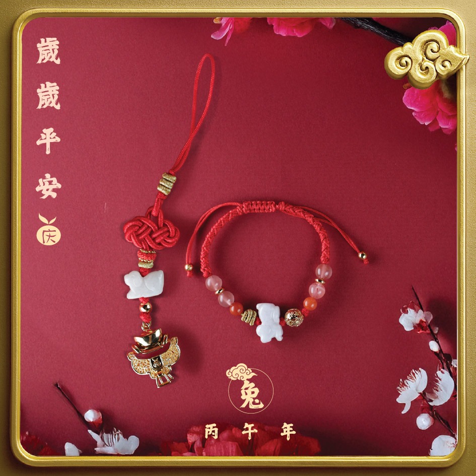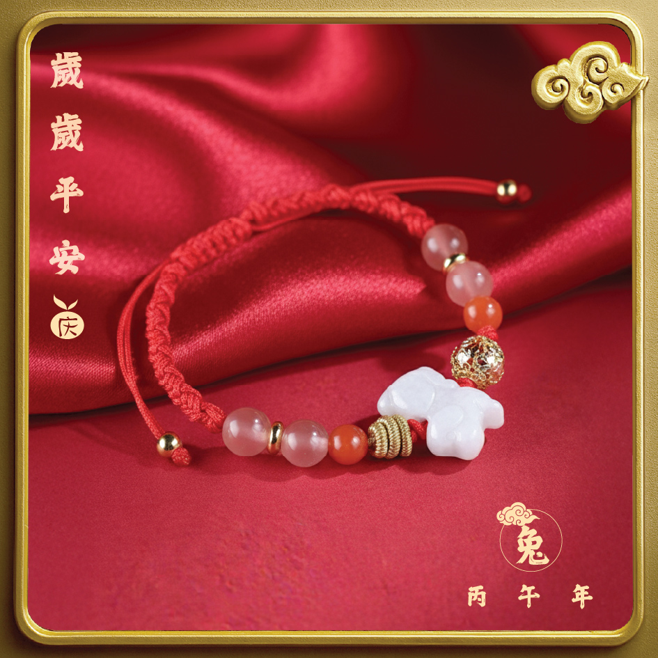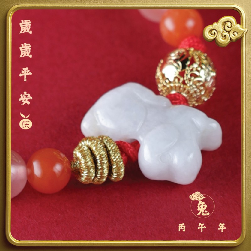 四款專為犯太歲生肖(馬、鼠、兔、牛)設計的「鴻運當頭隨身手繩」,每款均配有一至兩枚優質 A 玉雕制的生肖玉石,助力化解流年衝擊,增添福澤。