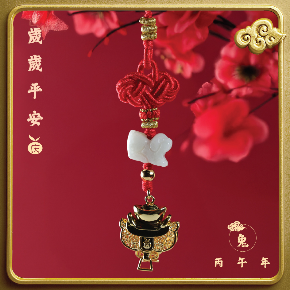 四款專為丙午馬年犯太歲生肖(馬、鼠、兔、牛)量身打造的「馬載金寶掛飾」,除了採用天然生肖玉石以助趨吉避凶,更以馬年開運為概念,獨家配搭鍍真金的「招財金鞍」旺運配件,祝願佩戴者在新一年鵬程萬裡、諸事順遂、馬到功成。