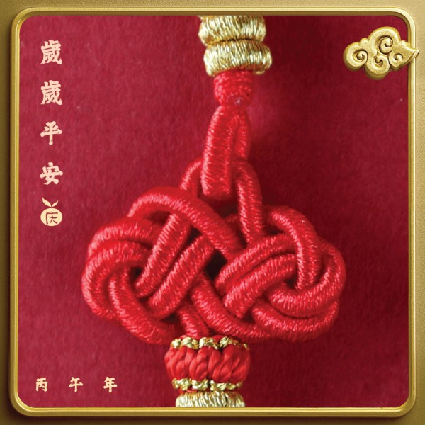 除了核心的開運設計,老師傅的精湛編織工藝更為掛飾賦予了多元祥瑞寓意。從上至下精心搭配的三款吉祥繩結,分別是「三三不盡金運結」、「祥雲結」及「紅金雙色平結」,每一款都承載著獨特的祝福。