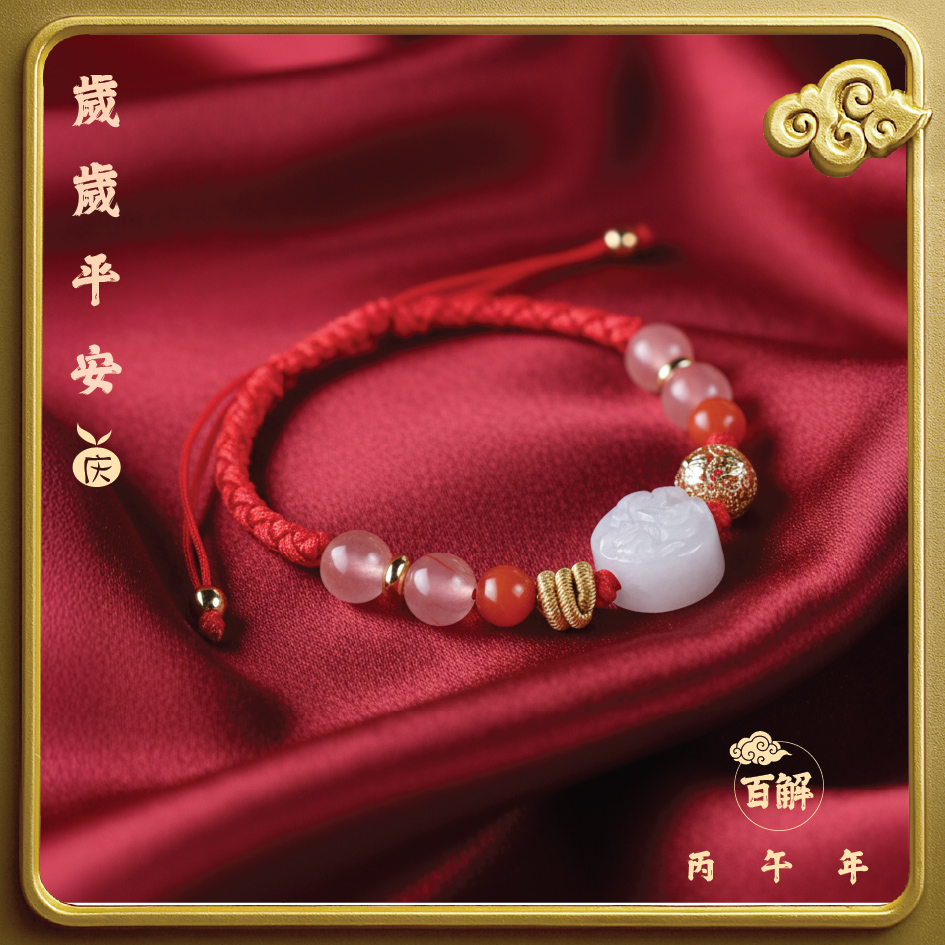「百解」是中國靈獸之一,玄學上有鎮宅化煞、招福納財之意,特別有助減低家宅不穩及人事紛爭的流年衝擊。「人人合用・百解吉祥飾物」系列以傳說靈獸的祥和靈力為核心,契合馬年的流年特性,精選多層旺運元素融入設計。既強化佩戴者整體運勢,亦助其匯聚周遭吉運。冀盼不犯太歲人士在新一年行事順遂無阻、謀事馬到功成,實為丙午馬年送禮自用的妙絕佳品。