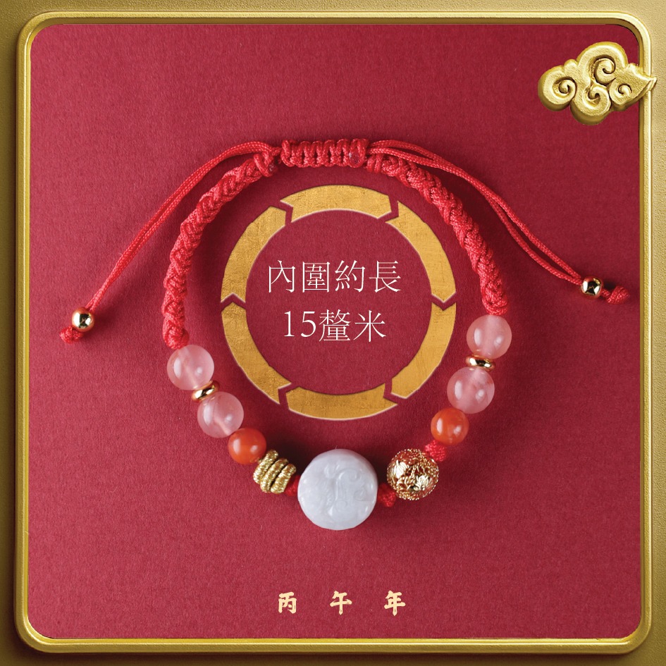 手繩採用可調節式結構設計,適合男女老幼貼身佩戴,搭配瑰麗包裝,實為送禮自用的上佳之選,願佩戴者在馬年常伴幸福、平安如意。